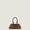 - Crocodile-effect embossed leather handles.