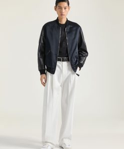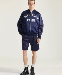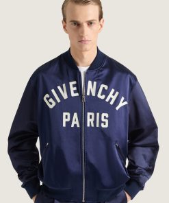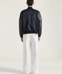Men’s Ready-to-wear Bomber In Leather And Satin With Givenchy Paris Embroidery | Black & Black