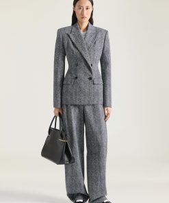 Givenchy Women’s Ready-to-wear Cocoon Tailored Pants In Cotton Herringbone | Black & White