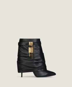 Givenchy Women’s Shoes Shark Lock Stiletto Ankle Boots In Nappa Leather In – Black | Black