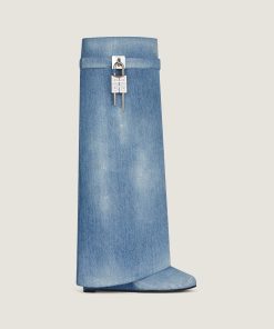 Givenchy Women’s Shoes Shark Lock Boots In Washed Denim In – Medium Blue Medium Blue | Medium Blue