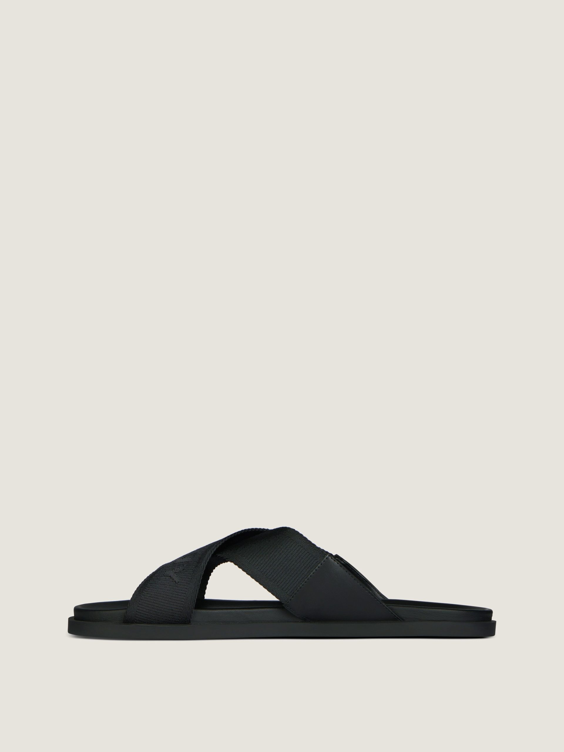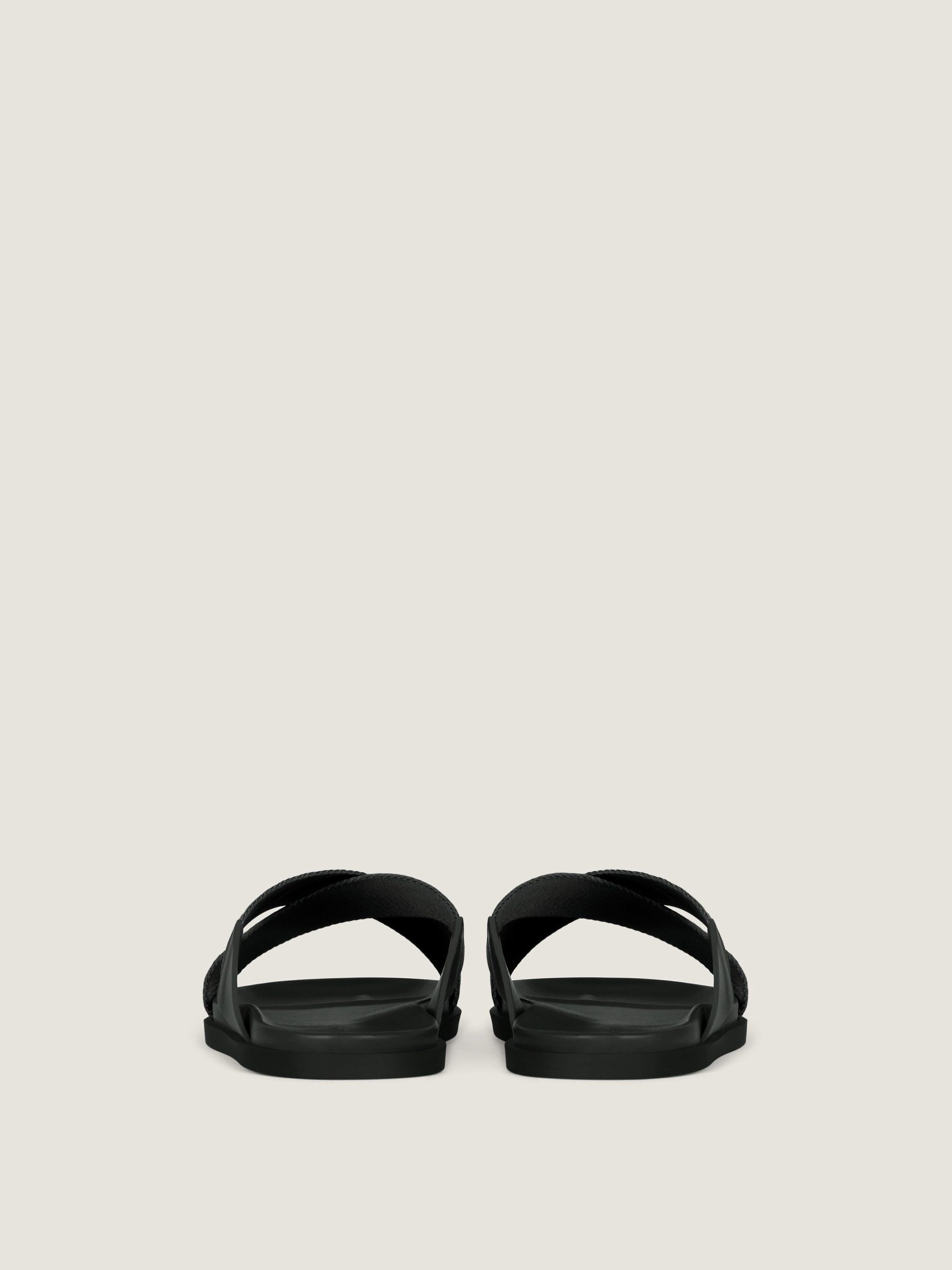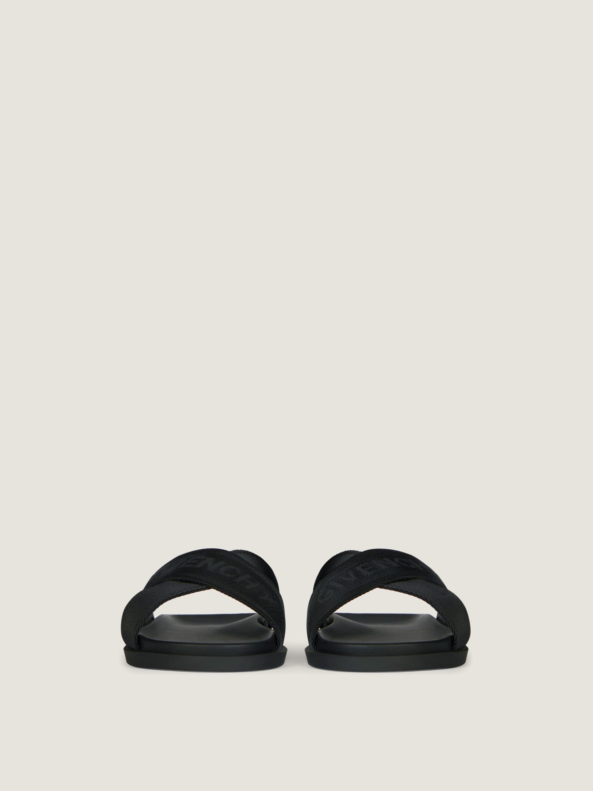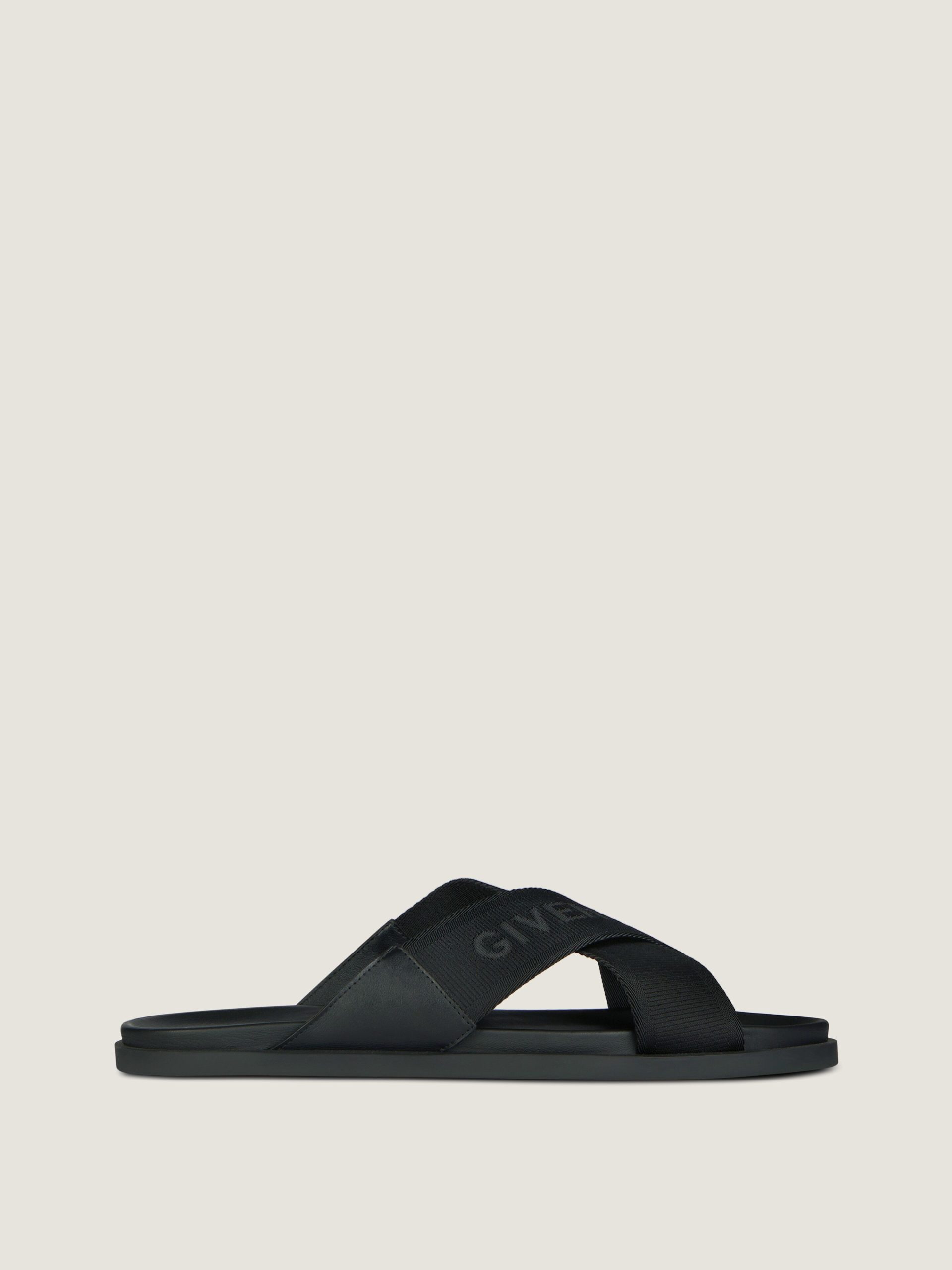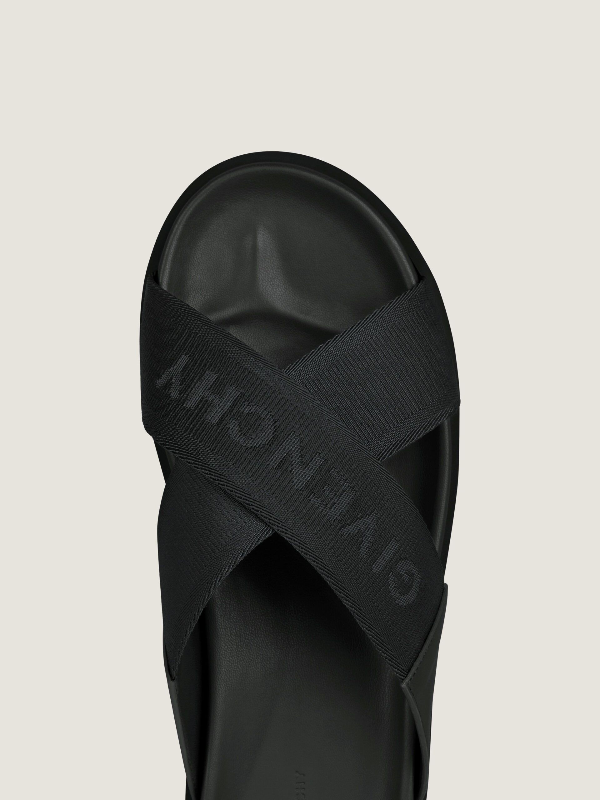 - Flat mules with GIVENCHY webbing bands crossed on top.