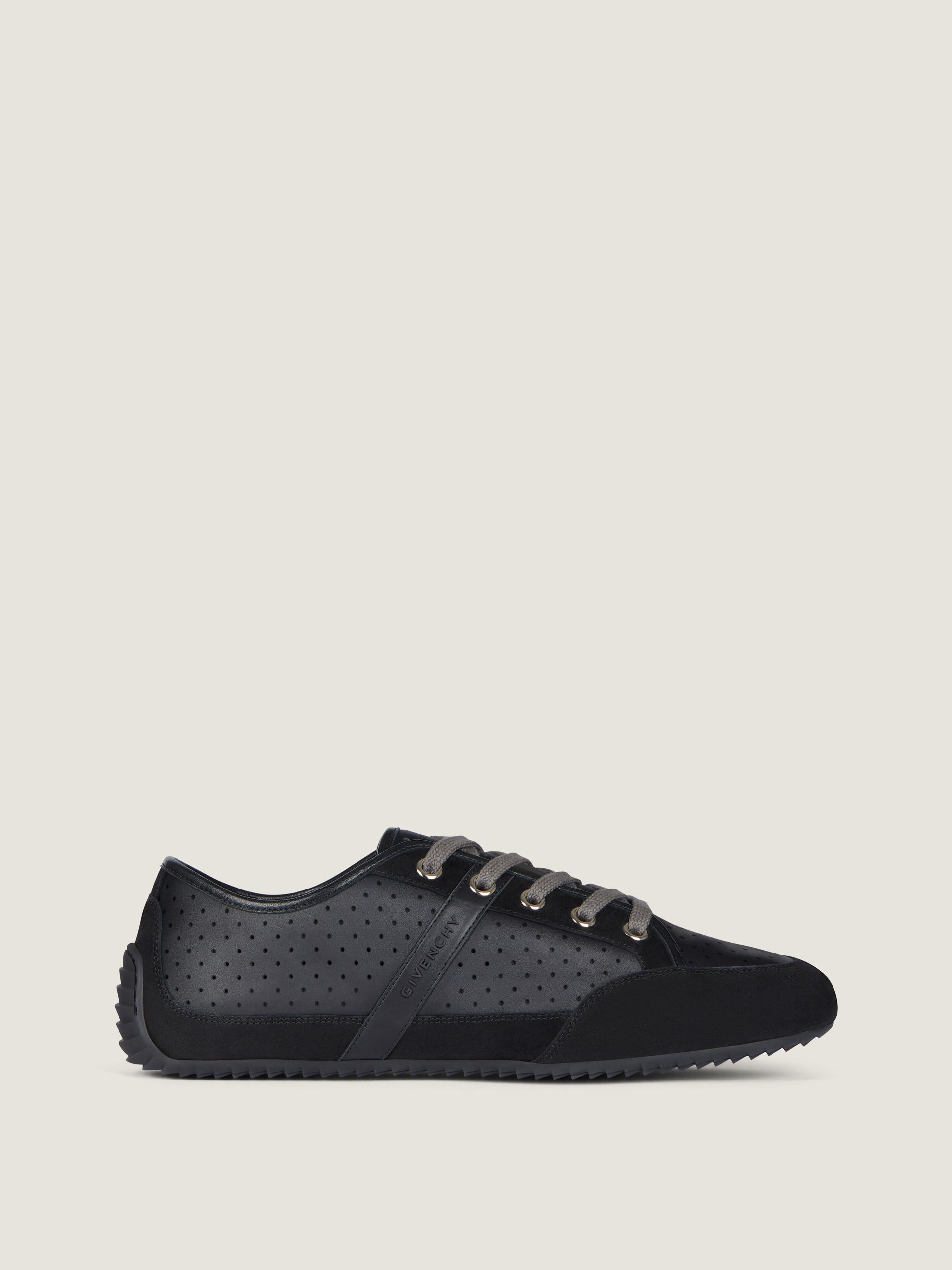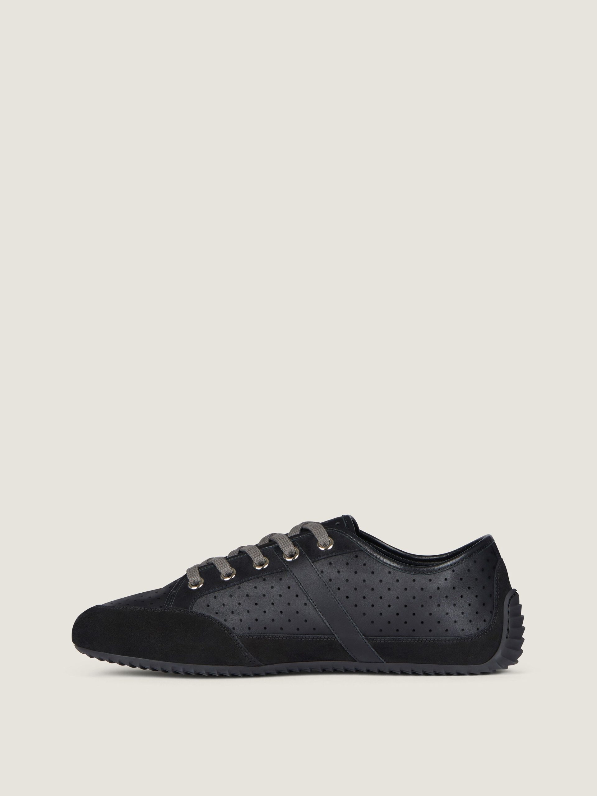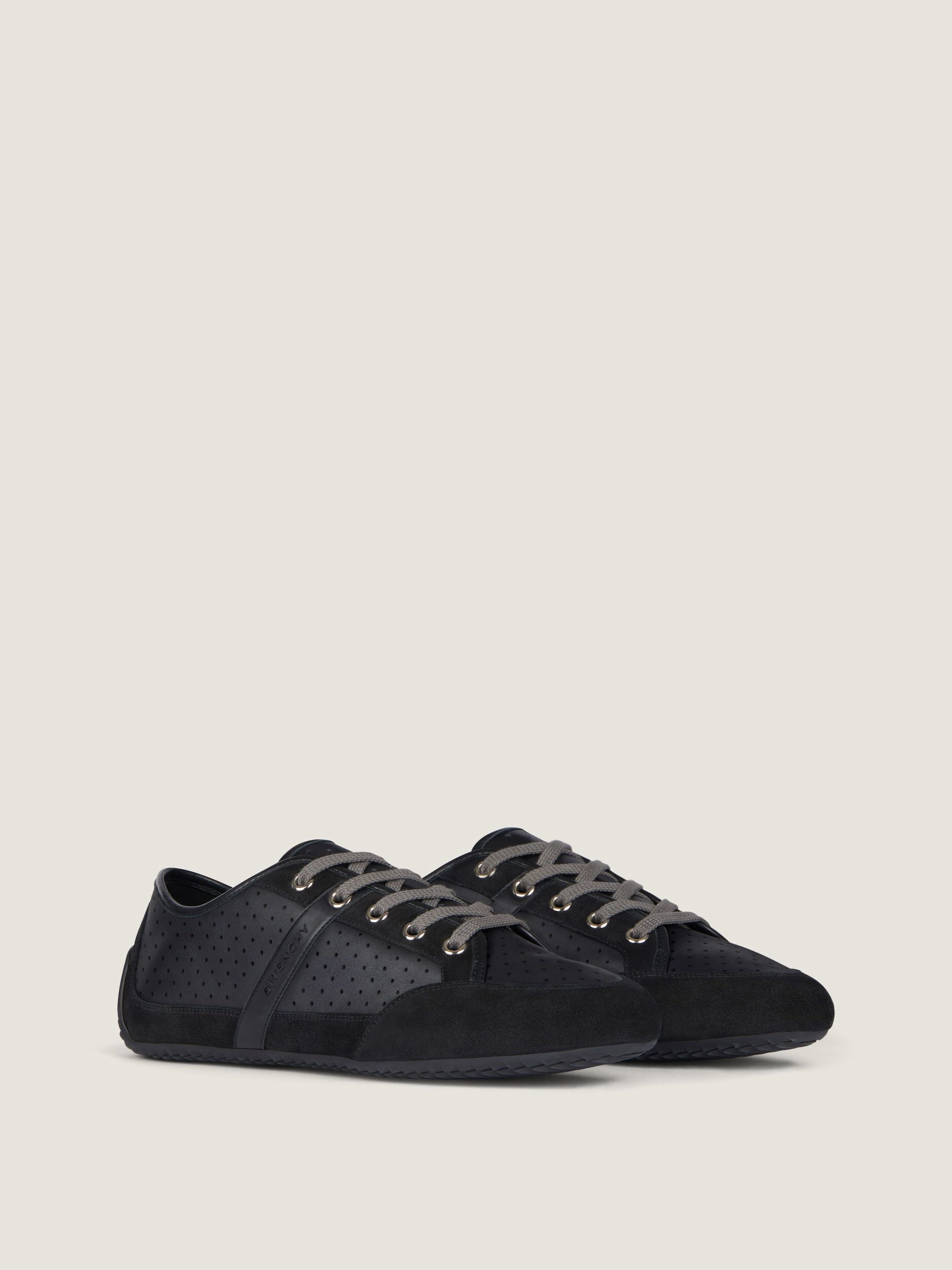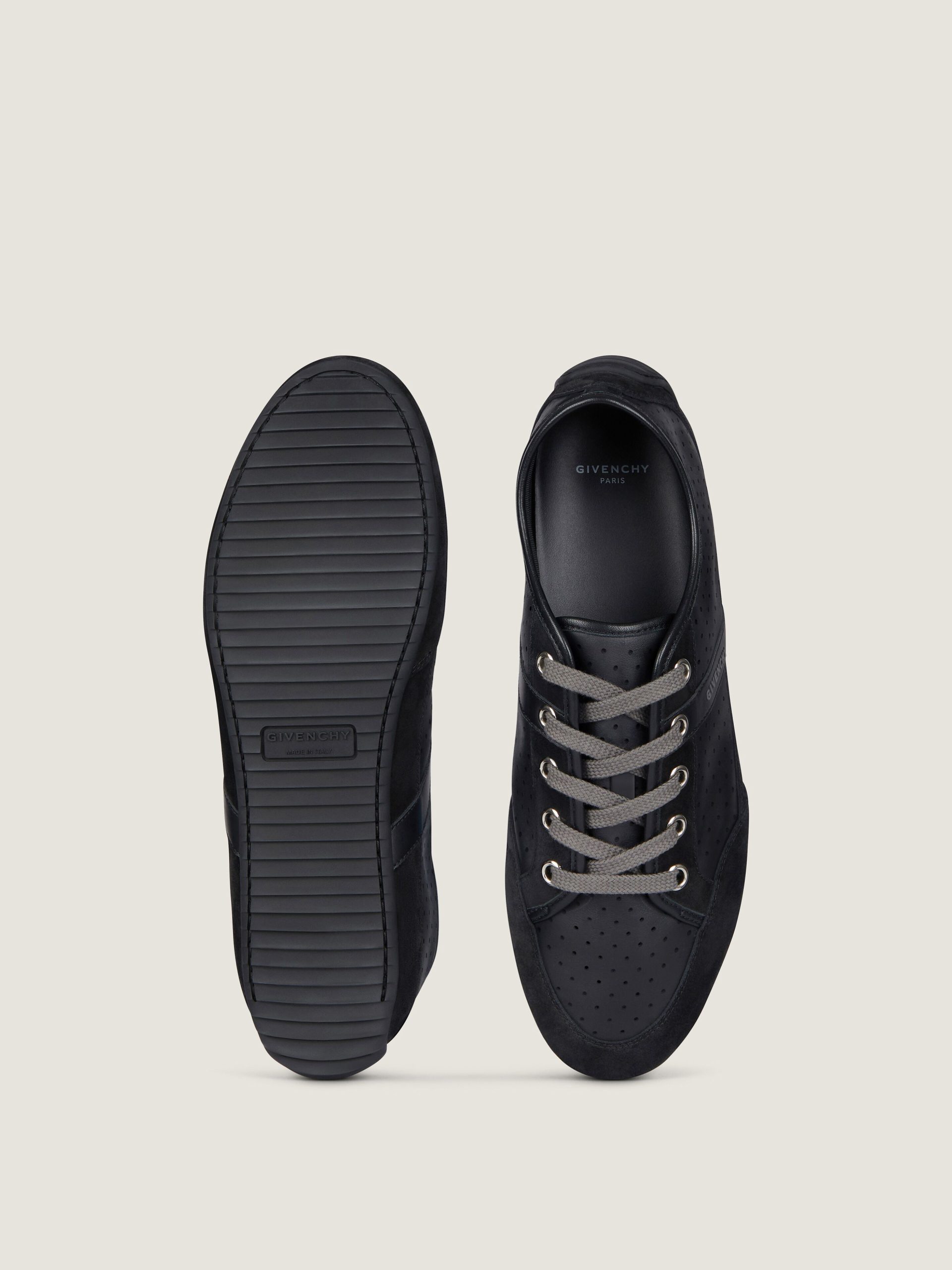- Low sneakers in perforated leather and suede leather.
