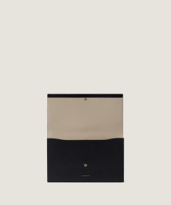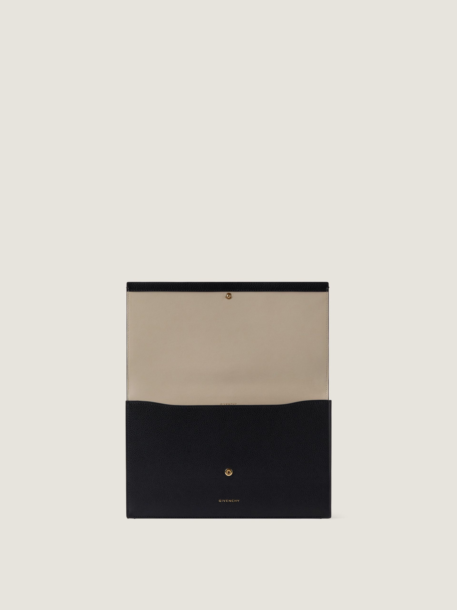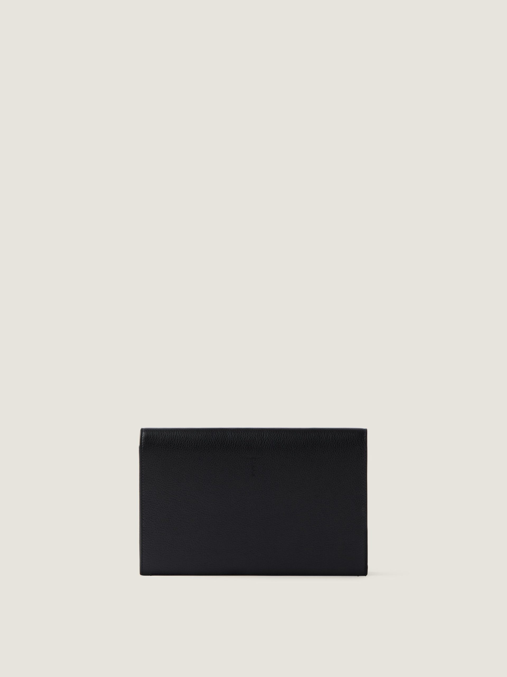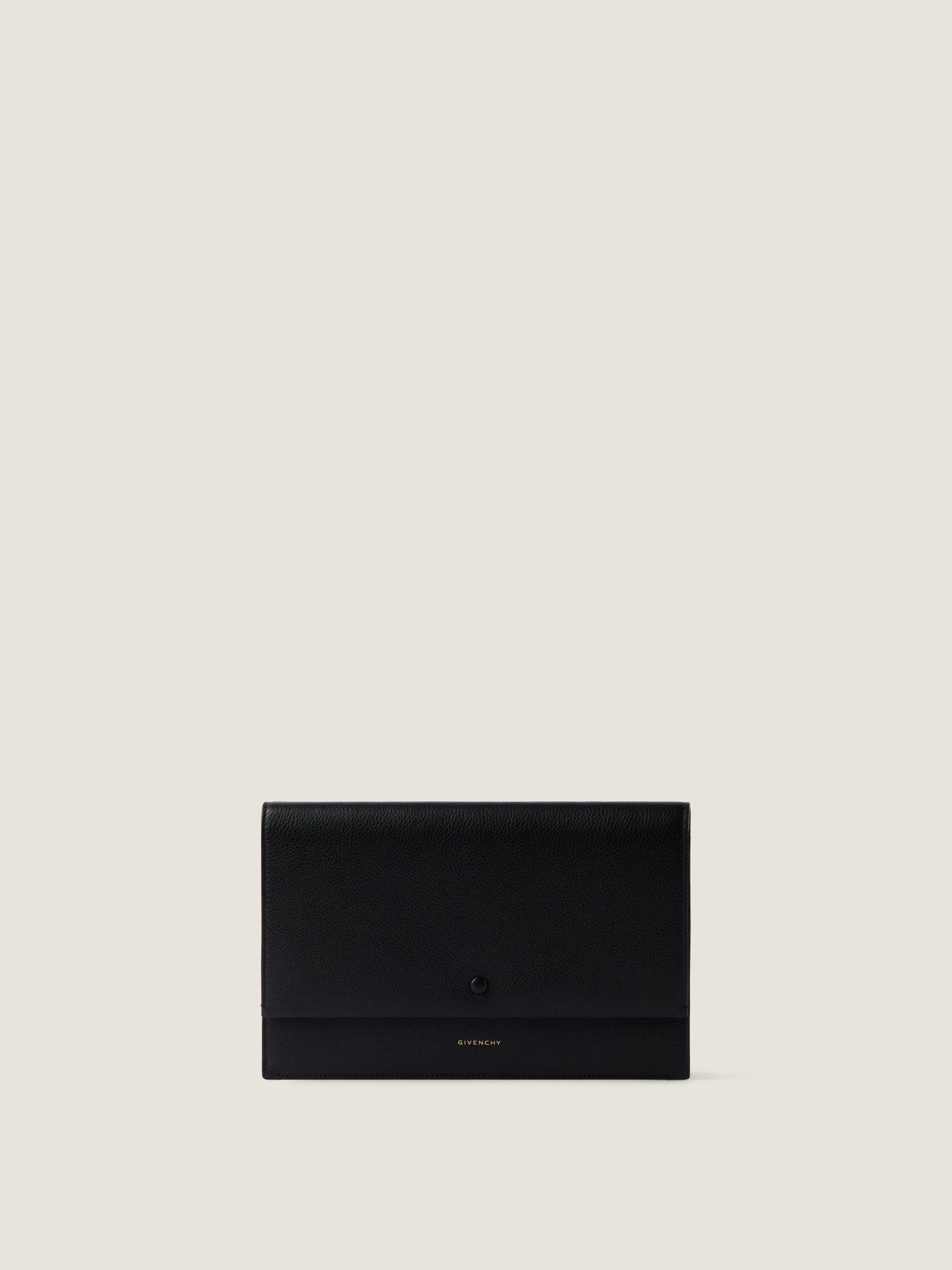 - Flat pouch in grained leather.