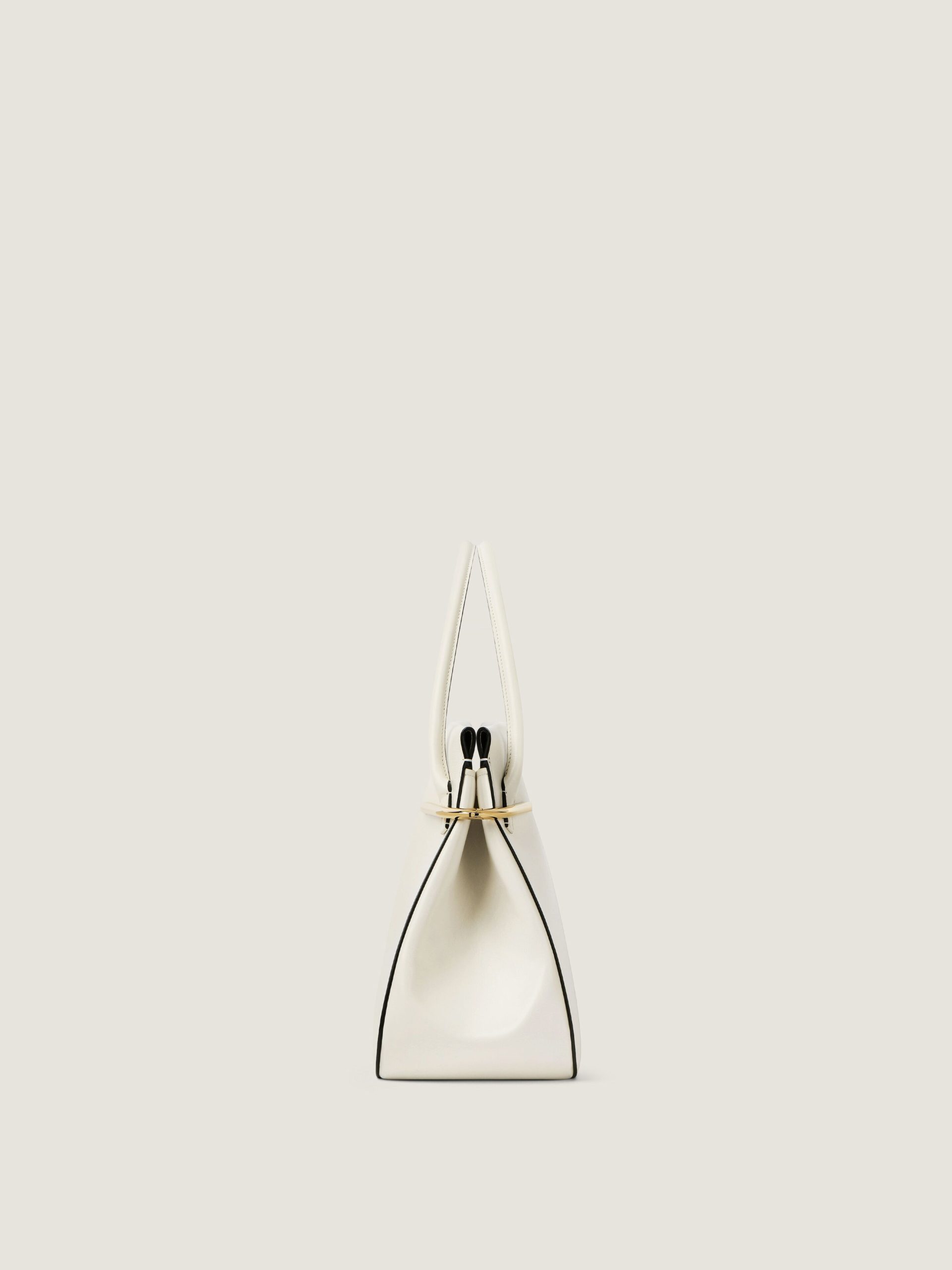 - Large handbag in leather with natural grain and textured finishing.