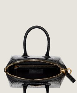 Givenchy Women’s Mini Antigona Bag In Crocodile Effect Leather In – Black | Black