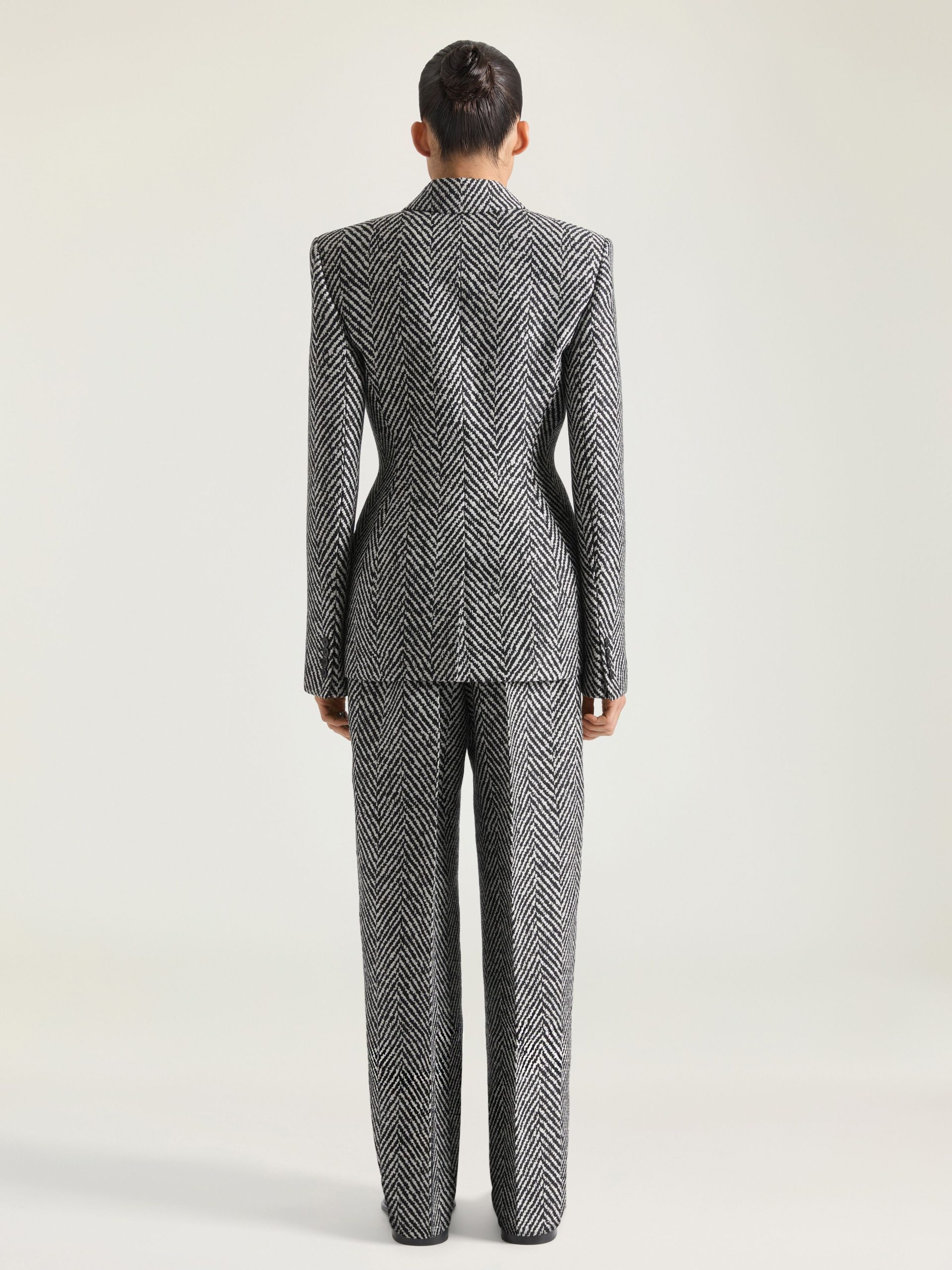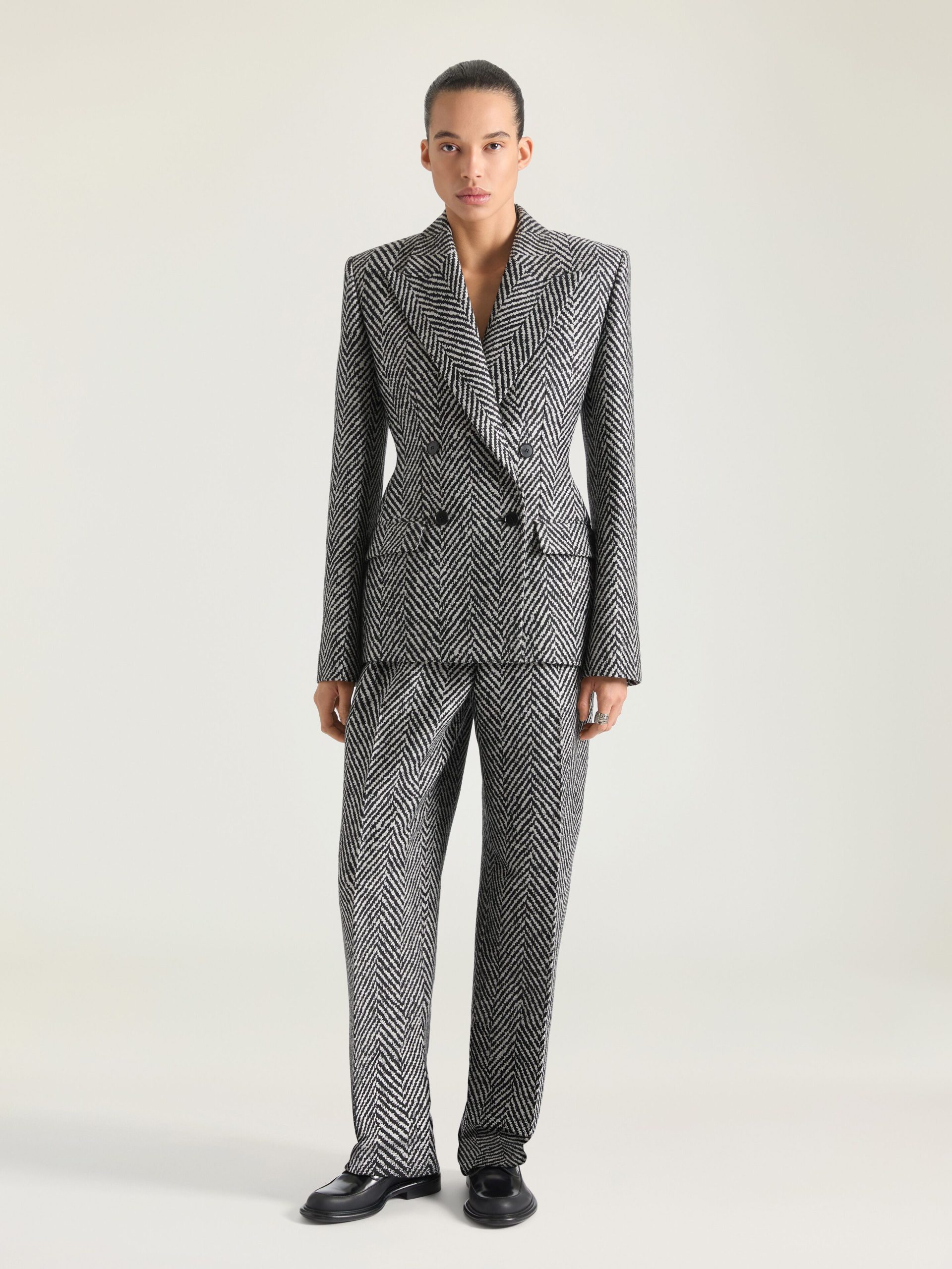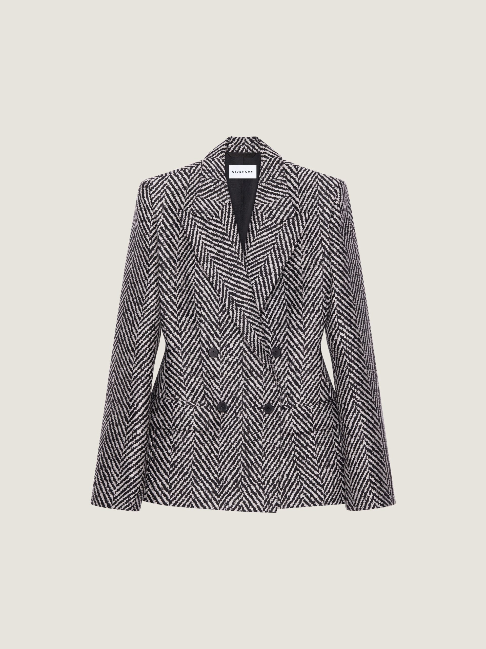Givenchy Women’s Ready-to-wear Double-breasted Jacket In Wool And Silk Herringbone | Black & White