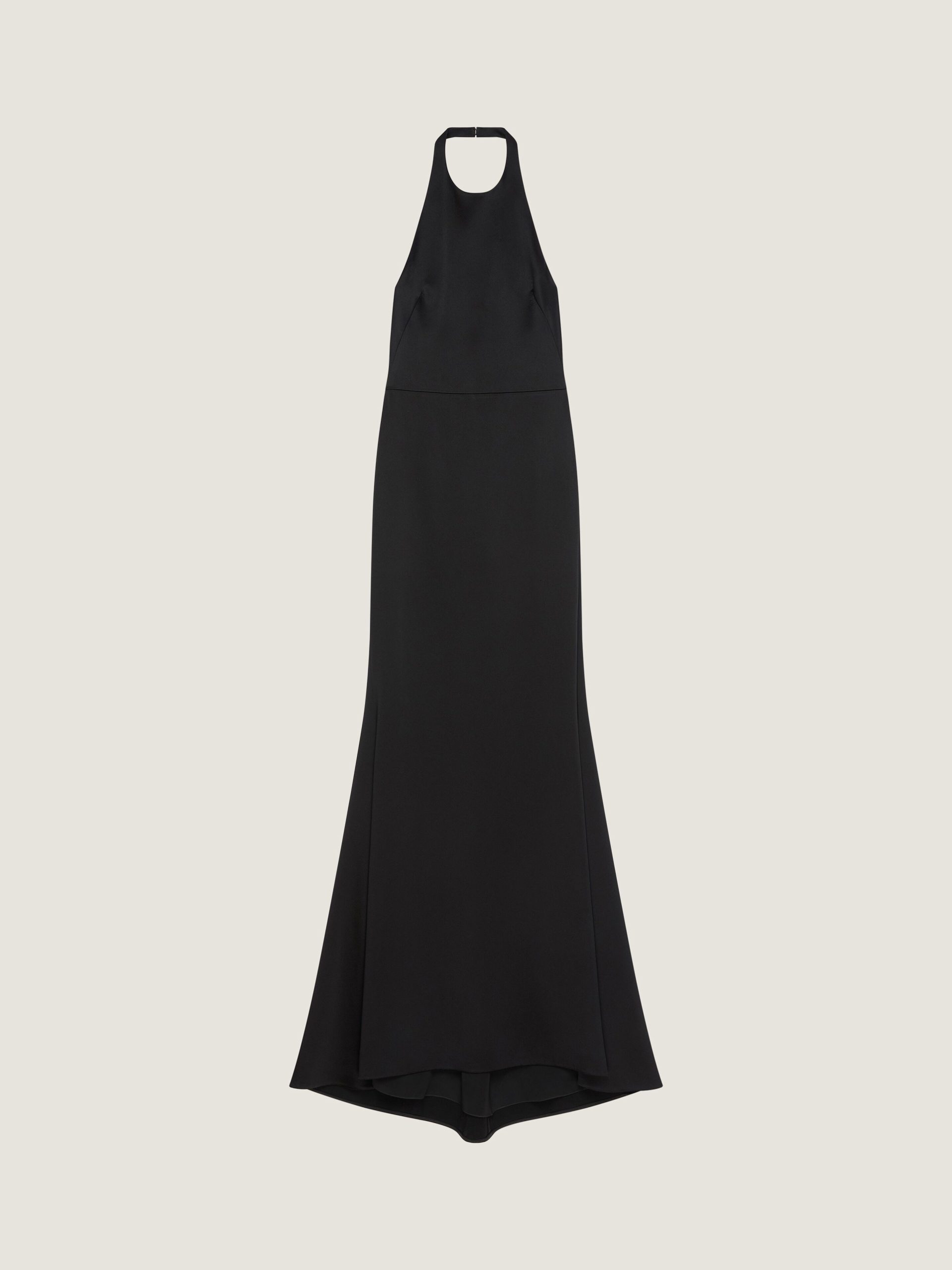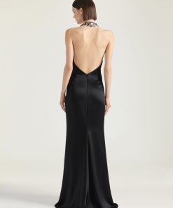 - Invisible zipped closure on the back and hook at neck.