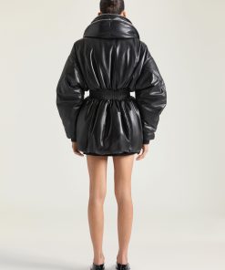 - Couture seams for a cocooning volume and cinched waist.