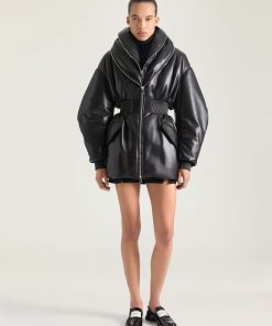 - Hourglass bomber in nappa leather.
