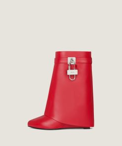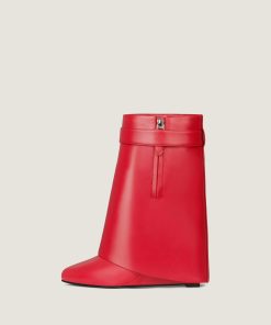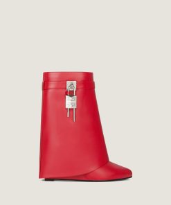 Givenchy Women’s Shoes Shark Lock Ankle Boots In Leather In – Red | Red