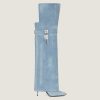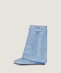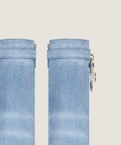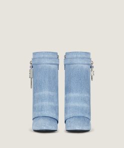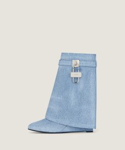 - Denim band with a GIVENCHY metal clasp and 4G padlock on the right boot.