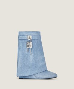 - Denim band with a GIVENCHY metal clasp and 4G padlock on the right boot.