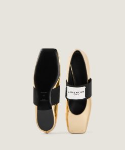 Givenchy Women’s Shoes Sliced Square Ballerinas In Mirror Effect Leather | Golden
